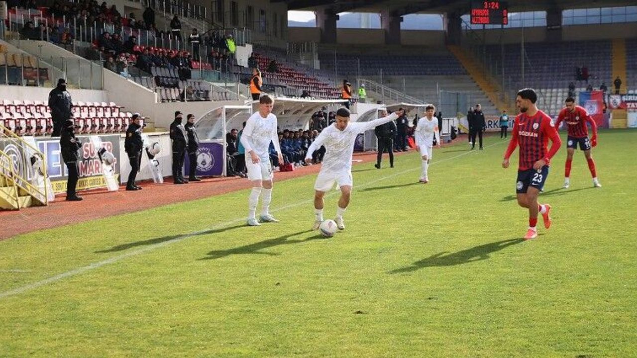 Maçın ilk yarısında, Afyonspor, maç başladığı andan itibaren baskılı bir oyun sergiledi. Birçok gol pozisyonu bulan Mor Beyazlılar, 17’nci dakikada harika paslarla rakip kaleyi zor duruma düşürdü. Kaleyi bulan şutu Altınordu kalecisi kurtardı. 23’üncü dakikada ise Afyonspor kalecisi Recep Tayip Kaya üst üste 2 mutlak golü çıkararak taraftarın alkışlarını kazandı.