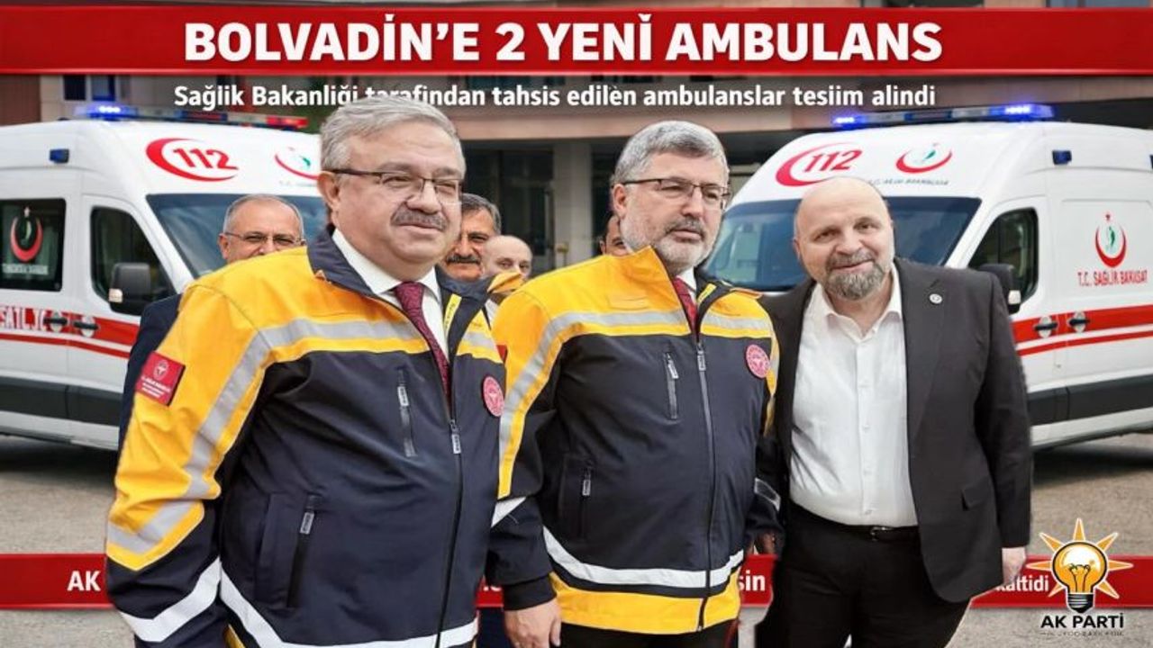 Sağlık Bakanlığı tarafından Bolvadin ilçemize tahsis edilen iki adet ambulans, düzenlenen teslim töreniyle hizmete alındı. Törene AK Parti Bolvadin İlçe Başkanı Av. Yasin Nurbaş ile birlikte AK Parti Afyonkarahisar Milletvekilleri Ali Özkaya, İbrahim Yurdunuseven ve Hasan Arslan katıldı.