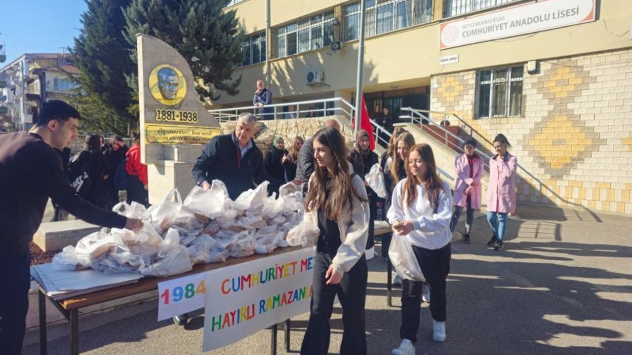 Afyonkarahisar Cumhuriyet Lisesi 1984-1985 mezunları, Ramazan ayının paylaşma ve dayanışma ruhunu yaşatmak amacıyla anlamlı bir etkinliğe imza attı. Mezunlar, okul bahçesinde öğrencilere Ramazan pidesi dağıtarak hem eski günleri yad etti hem de öğrencilerle buluşmanın mutluluğunu yaşadı.