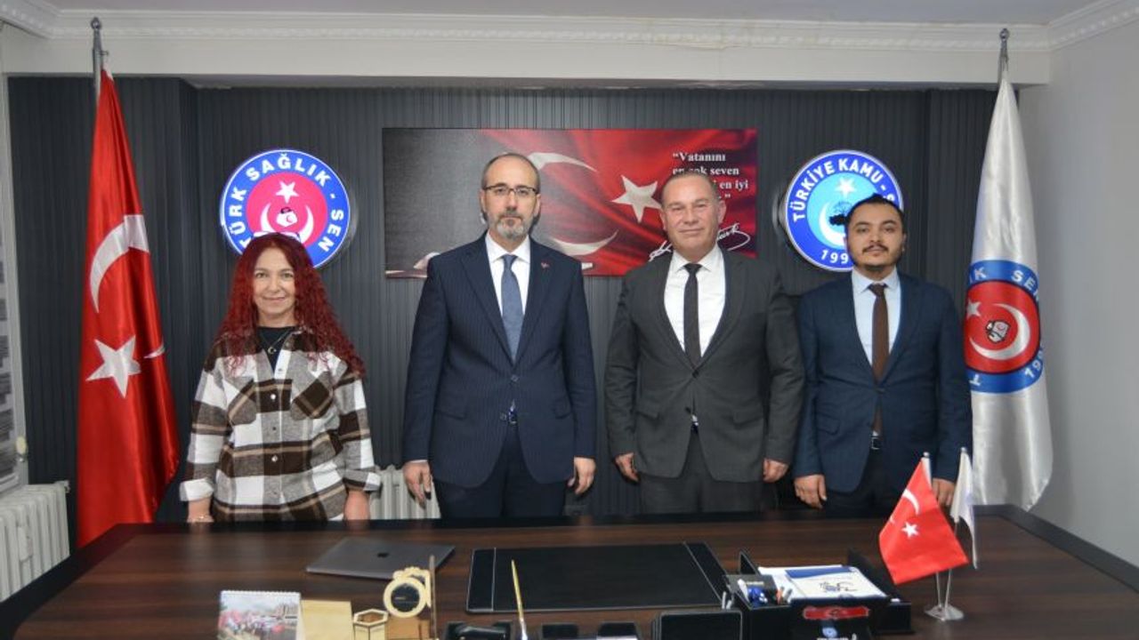 Şube Başkanı Mehmet Ali Öztürk ile yönetim kurulu üyeleri Fatma Zehra Okur Cerit ve Hüseyin Zıplak tarafından ağırlanan Dr. Öztürk ziyarette, ilimizdeki sağlık hizmetlerinin işleyişi, sağlık çalışanlarının beklentileri ve sendikanın çalışmaları hakkında görüş alışverişinde bulundu.