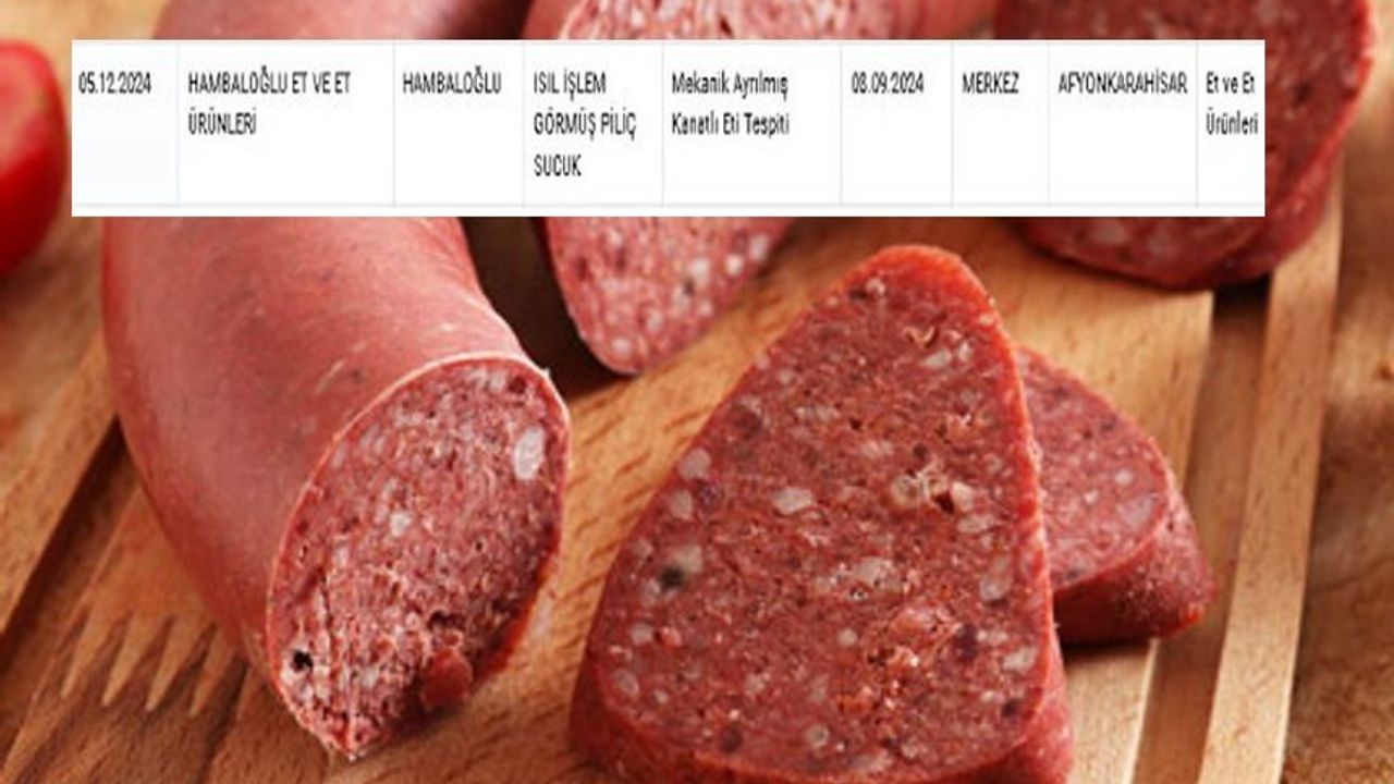 Bakanlık Afyonkarahisar 'HAMBALOĞLU' markasını ifşa etti. Markanın vatandaşlara sattığı "Isıl İşlem Görmüş Piliç sucuk" ürününde "Mekanik Ayrılmış Kanatlı Eti Tespiti" tespit edildi.