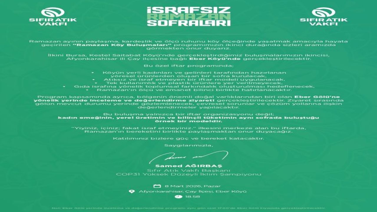 Proje kapsamında gerçekleştirilecek tüm iftar organizasyonları, “israf etmeme