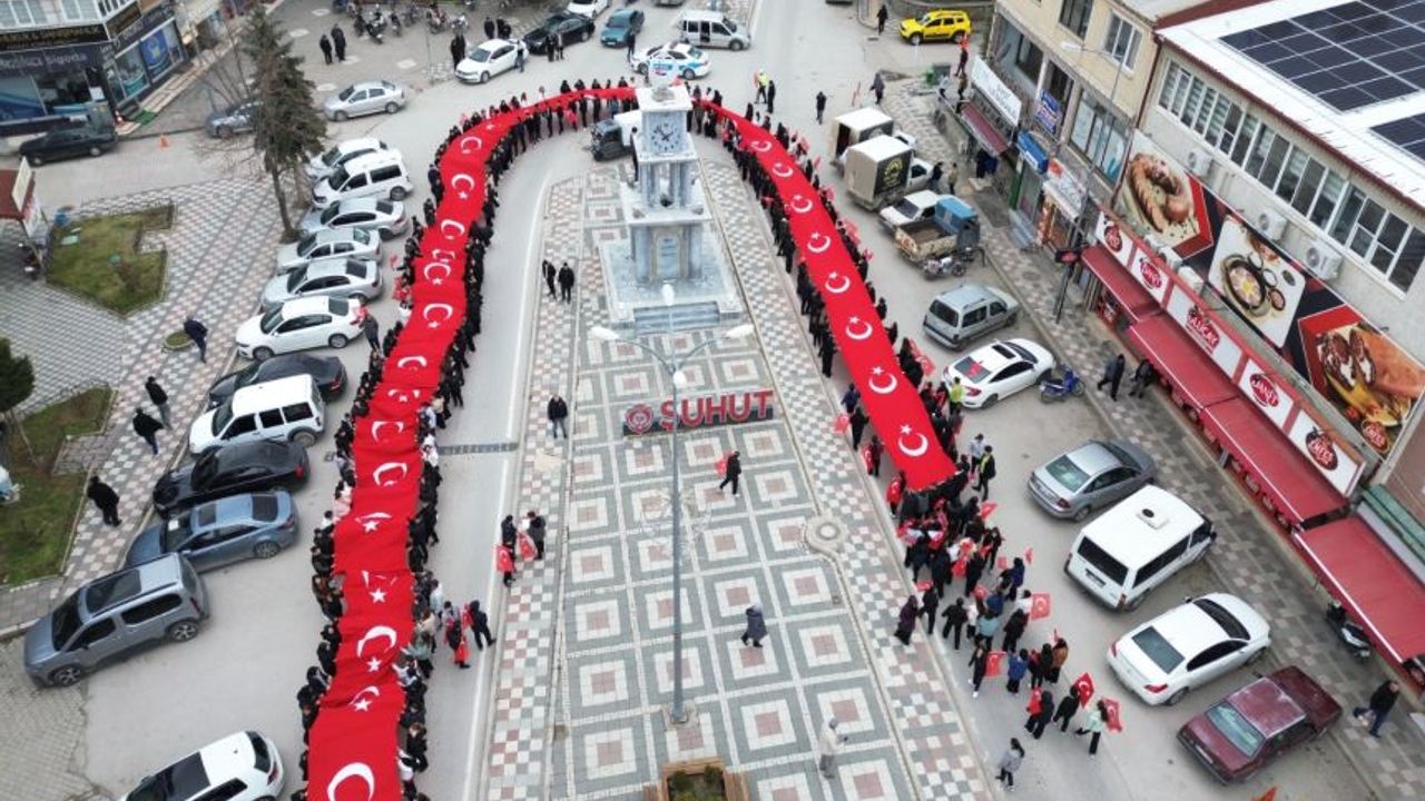 Şuhut Zafer Anadolu Lisesi tarafından düzenlenen Bayrak Sevgisi temalı yürüyüş ilçe halkına duygu dolu anlar yaşattı. Etkinlikte öğrenciler 150 metre uzunluğundaki Türk Bayrağını ellerinde gururla taşıdı.