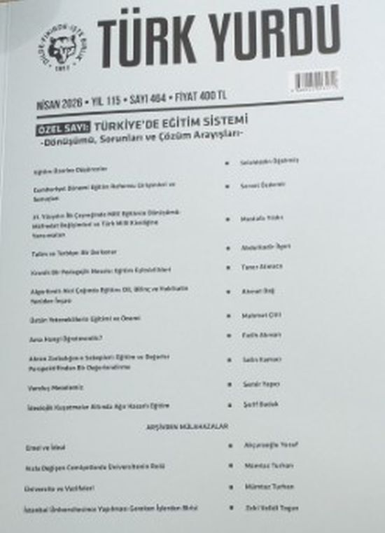 Ülkemizde çok ciddi kurumlar, kuruluşlar, meslek odaları, Sivil Toplum kuruluşları Eğitim kurumları, vakıflar vardır. Bunlardan birisi de Türk Ocakları Derneğidir. Kamu Yararına Çalışan bir Mefkûre ve Kültür Derneği olan Türk Ocaklarının amacını bugün şu şekilde ifade etmek mümkündür. “Türk’ün değerlerini tanıtmak, korumak, yüceltmek; Türk’ün dertlerine de çözüm yolları üretmek ve ilgili makamlara sunmak”. Bu cümleden olmak üzere; genelde akademisyenlerin yazılarının yer aldığı ve 115 yıldır aralıksız çıkan Türk Ocakları yayın organı TÜRK YURDU DEREGİSİ’NİN 2026 Nisan sayısı “TÜRKİYE’DE MİLLİ EĞİTİM SİSTEMİ (dönüşümü-Sorunları ve Çözüm Arayışları) başlığı ile özel sayı olarak çıkmıştır. Türk Ocakları Milli Eğitimdeki sorunları tespit ettiği gibi, bu sorunların çözümünü de bu özel sayısı ile milletimizle Nisan ayının başında paylaşmıştır.